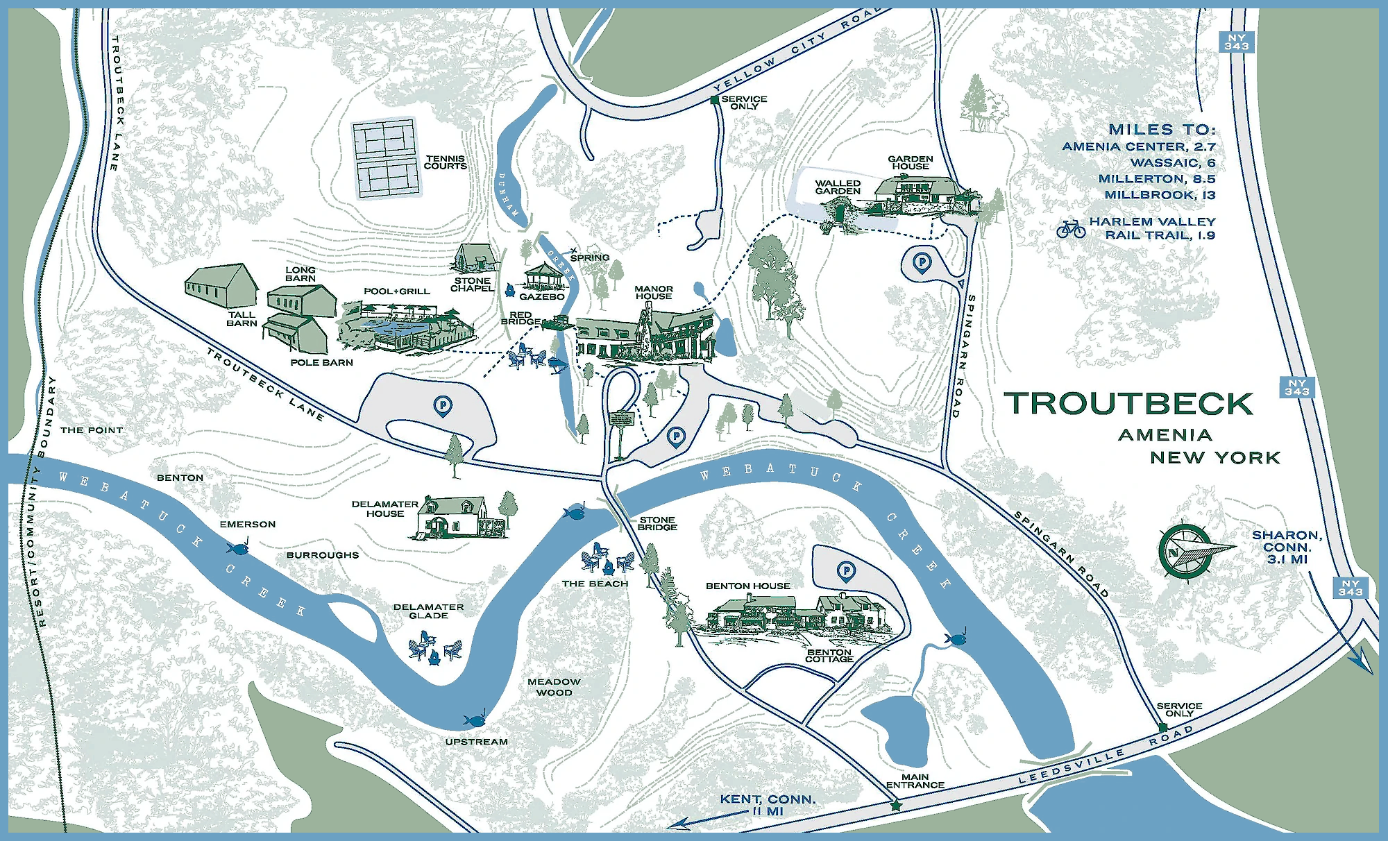 For travelers coming from New York City, you can take the Metro-North Railroad from Grand Central Station to Wassaic Station, which is only a 10 minute drive from Troutbeck. The train takes approximately 2 hours and 40 minutes, with a transfer at Southeast Station en route.